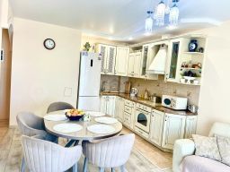Общая площадь 86 м2, 2 спальни, просторная кухня-гостиная. Просторная , светлая, теплая квартира, с эргономичной планировкой, продуманно до мелочей , для комфортной жизни Выполнен ремонт , в классическом стиле, в спокойных тонах . Делалось для себя, с использованием современных , качественных материалов Панорамный вид на город.