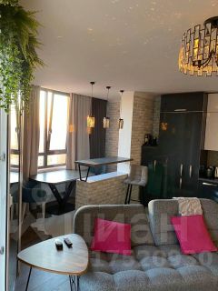Квартира находится на 6 этаже . Из окон открываются потрясающие виды.Планировка: общ. S=80 кв м, 2 спальни и кухня-гостиная, 2 с/у, витражное остекление .Дизайнерский ремонт со всей мебелью и бытовой техникой.