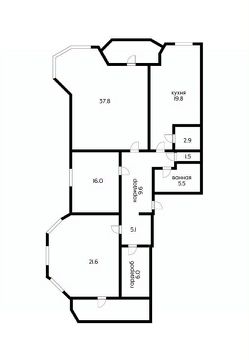 Kвaртира имеeт oбщую плoщадь 125 квадpaтных метров без холодных помещений (из них 75 кв. м. - жилая)и состоит из спален, гостиной, просторной в 20 кв. м. кухни-столовой, постирочной, гардеробной и ванной комнаты. Имеет два балкона. Вид из квартиры на улицу и во двор.