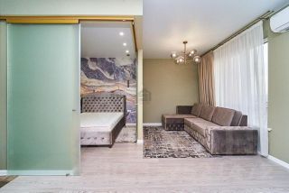 Квартира находится на 16 этаже . Из окон открываются потрясающие виды.Планировка: общ. S= 49,8 м, выделенная спальня и кухня-гостиная, просторная витражная лоджия .