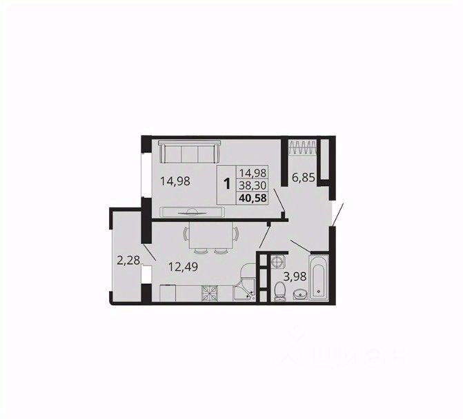 Общая площадь40,58 м²