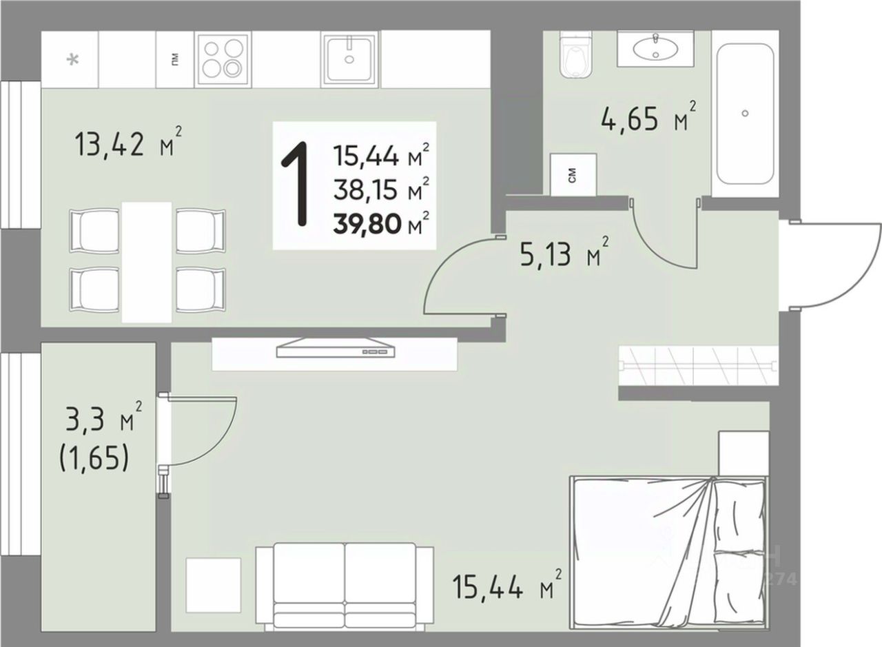 Общая площадь39,8 м²