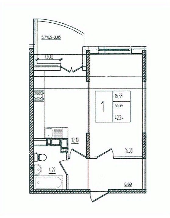 Общая площадь42,24 м²
