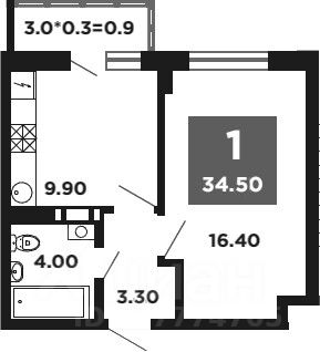 Общая площадь34,5 м²