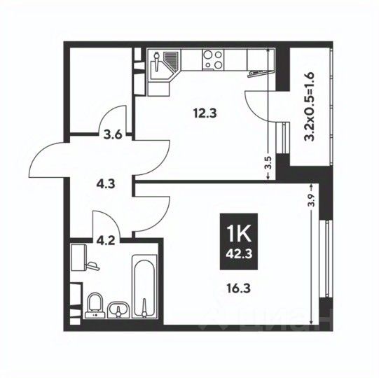 Общая площадь42,3 м²