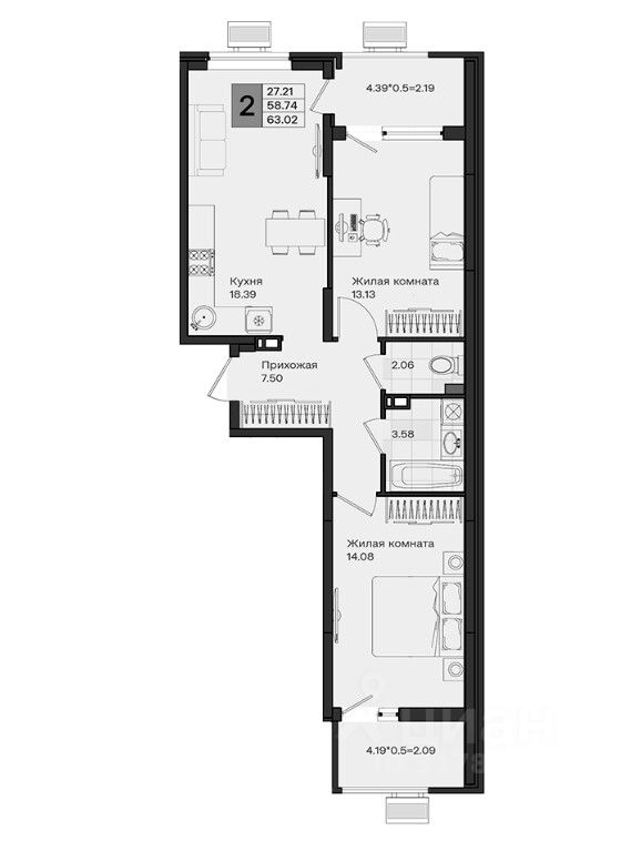 В комплексе представлено множество эргономичных планировок для студий и квартир с 13 спальнями. Квартиры идут в подчистовой отделке, с потолками высотой 2,75 метра, большими окнами и просторными лоджиями.