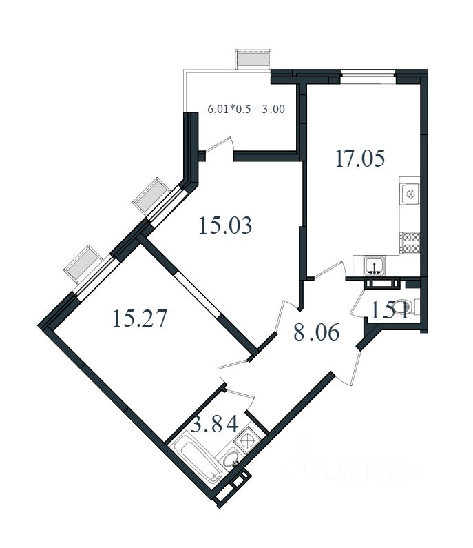 Площадь кухни17,1 м²