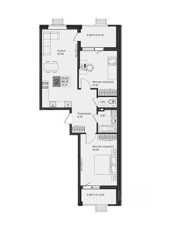 В комплексе представлено множество эргономичных планировок для студий и квартир с 13 спальнями. Квартиры идут в подчистовой отделке, с потолками высотой 2,75 метра, большими окнами и просторными лоджиями.
