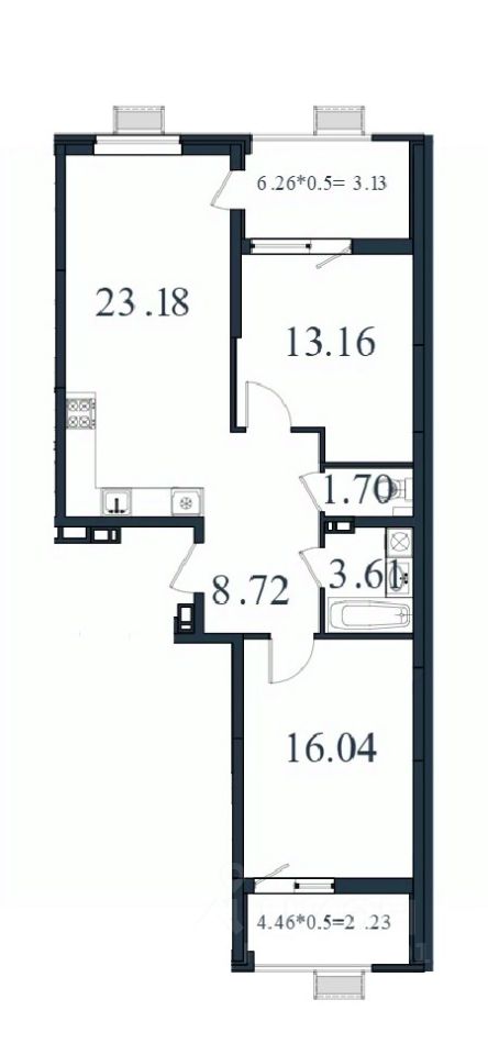 Площадь кухни23,2 м²
