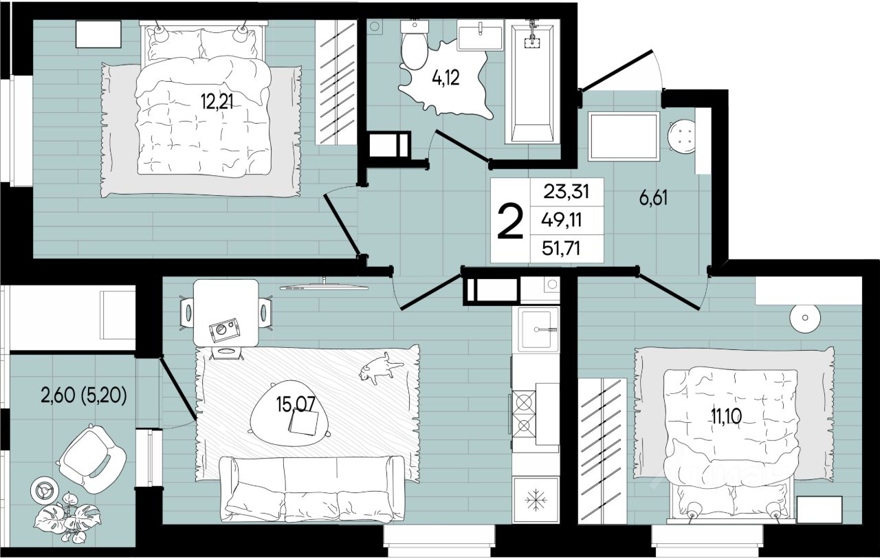 Общая площадь51,71 м²