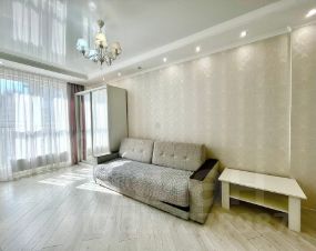 Квартира находится на 13 этаже . Из окон открываются потрясающие виды на историческую часть города. Планировка: общ. S=40 м, спальня и кухня-гостиная, с/у, просторная витражная лоджия .