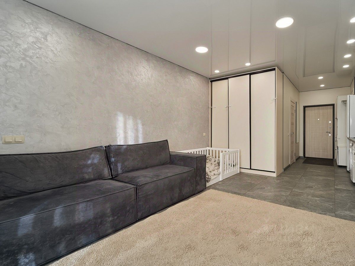 Расположена на 17-м этаже в 22-ти этажном доме. Площадь 25,60 кв.м. Большая комната с кухонной и спальной зонами, санузел, панорамный балкон. В квартире сделан современный евроремонт с использованием качественных материалов, везде натяжные потолки, санузел в плитке с теплым полом. Квартира полностью готова к заезду и не требует ни каких дополнительных вложений.