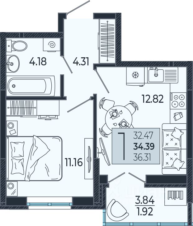 Продаётся 1 -комнатная квартира площадью 34,39 кв. м на 20 этаже в новом современном комплексе комфорт-класса от строительной компании "КОНТИНЕНТ ГРУПП" в одном из самых быстроразвивающихся районов города.
