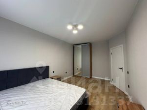 В комнате: кровать с прикроватными тумбочками, шкаф купе, тумбочка под телевизор