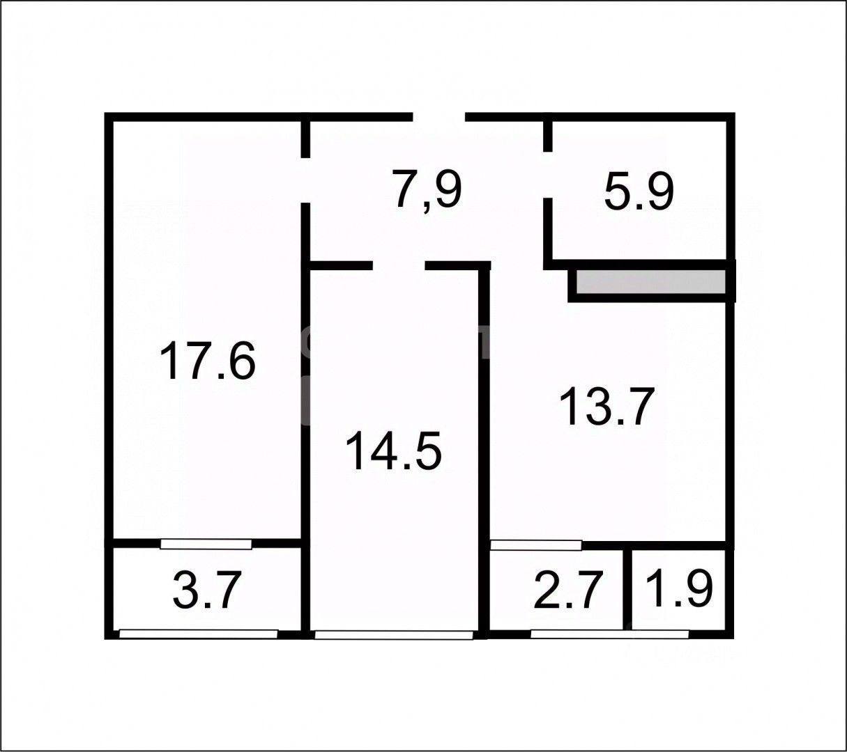 — Общая площадь квартиры 59.6 м².