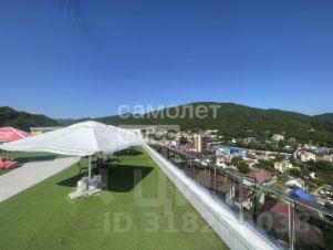 Крыша эксплуатируемая, на ней находится бассейн, шезлонги, кафе.