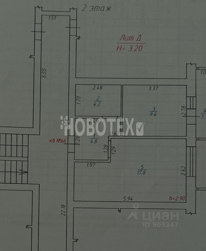 Квартира на втором этаже, общая площадь 39,9 м².