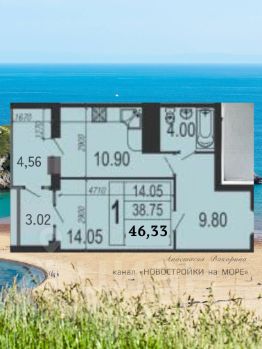 Площадь с учетом лоджии 46,33, без учёта лоджии 38.75 м2.