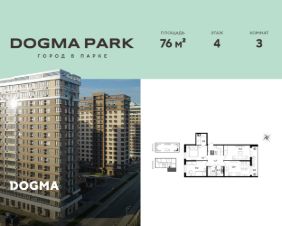 В продаже 3-комнатная квартира от застройщика! Мкр. "DOGMA PARK" г. Краснодар, Литер 21 Срок сдачи: 4 кв. 2027, общей площадью 76 кв.м., на 4 этаже.