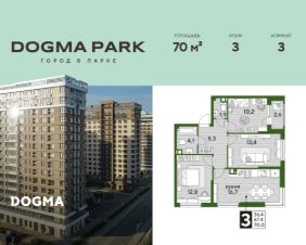 В продаже 3-комнатная квартира от застройщика! Мкр. "DOGMA PARK" г. Краснодар, Литер 23 Срок сдачи: 4 кв. 2027, общей площадью 70 кв.м., на 3 этаже.