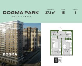 В продаже 1-комнатная квартира от застройщика! Мкр. "DOGMA PARK" г. Краснодар, Литер 22 Срок сдачи: 4 кв. 2027, общей площадью 37.3 кв.м., на 15 этаже.