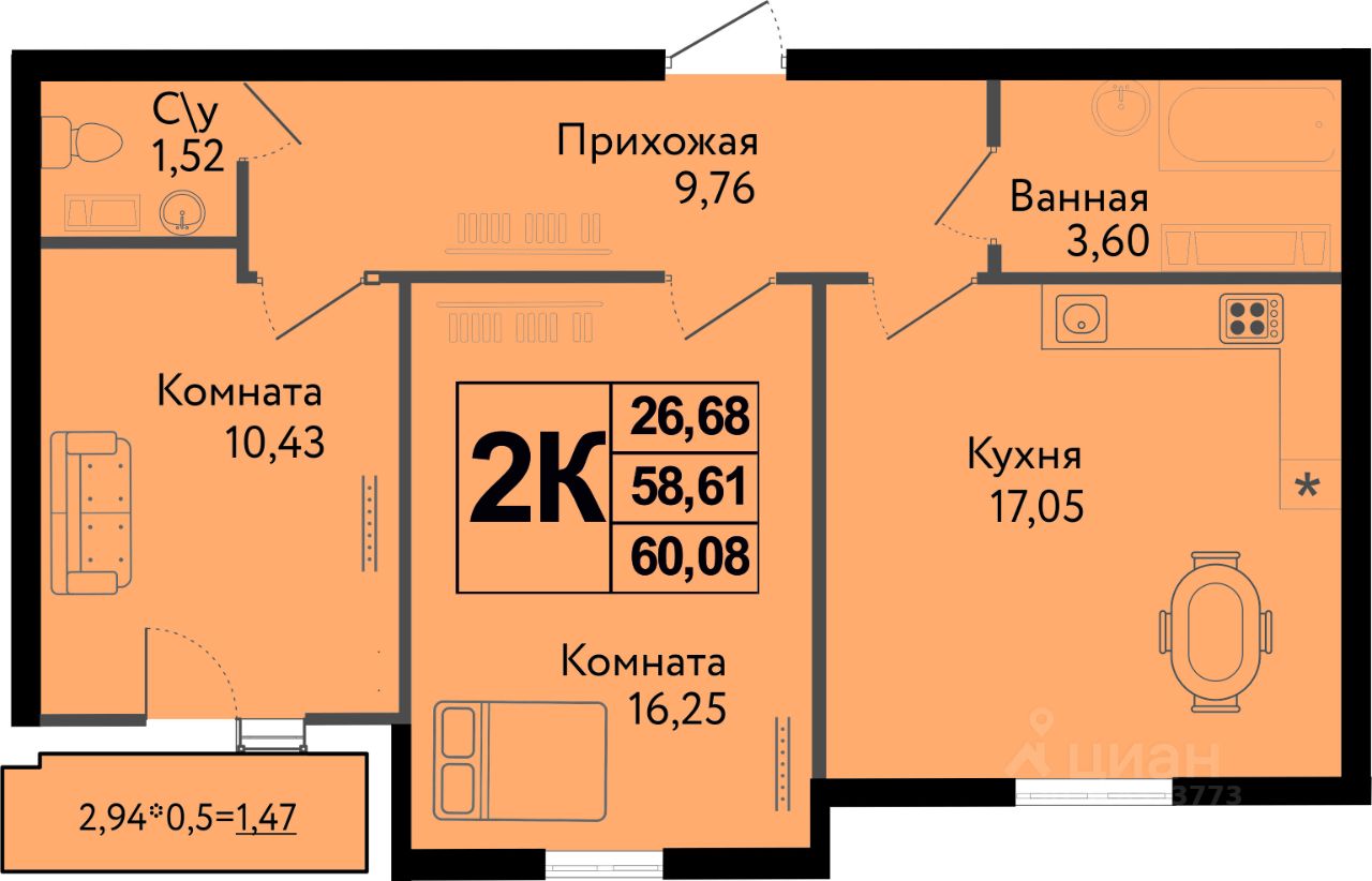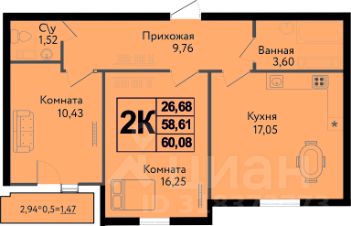 Общая площадь60,08 м²