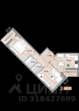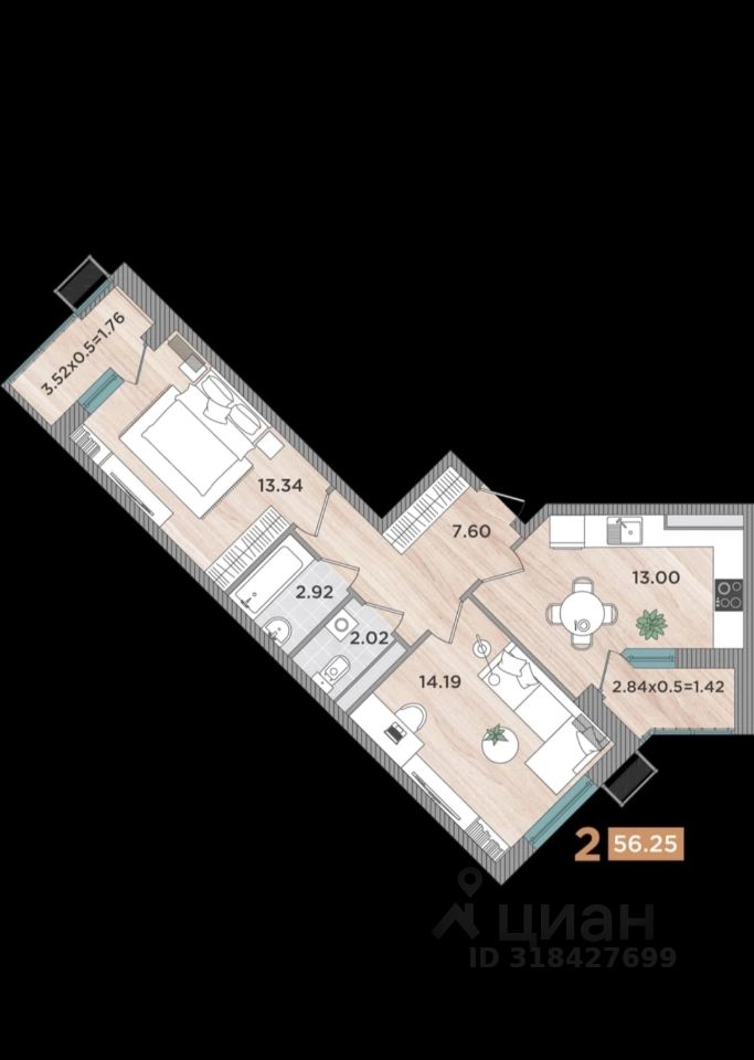 Продается просторная, светлая, полностью укомплектованная для комфортного проживания, двухкомнатная квартира - распашонка площадью 56,25 кв.м с двумя комнатами 14 кв.м и 13,5 кв.м, кухней 13 кв.м, с раздельным санузлом и двумя лоджиями. Большая уютная кухня позволяет собираться всей семьёй за общим столом. В комнатах установлены сплит системы и бойлер в санузле - у вас всегда будет горячая вода. Квартира расположена на комфортном 3-ем этаже. Планировка квартиры - самая удачная в доме. Здесь все делалось с любовью и для себя. Ремон дополнен элементами дизайна. Состояние - заезжай и живи. Она находится в новом ЖК класса "Комфорт" с закрытой придомовой территорией со множеством детских и спортивных площадок. Застройщик жилого комплекса СК Каскад в этом году начнет строительство детского сада рядом с ЖК. В доме есть магазин "Пятёрочка", Озон, Вайлдберриз, салон красоты. Многие коммерческие помещения сдаются в аренду, что позволит вам, при желании, открыть свой бизнес.