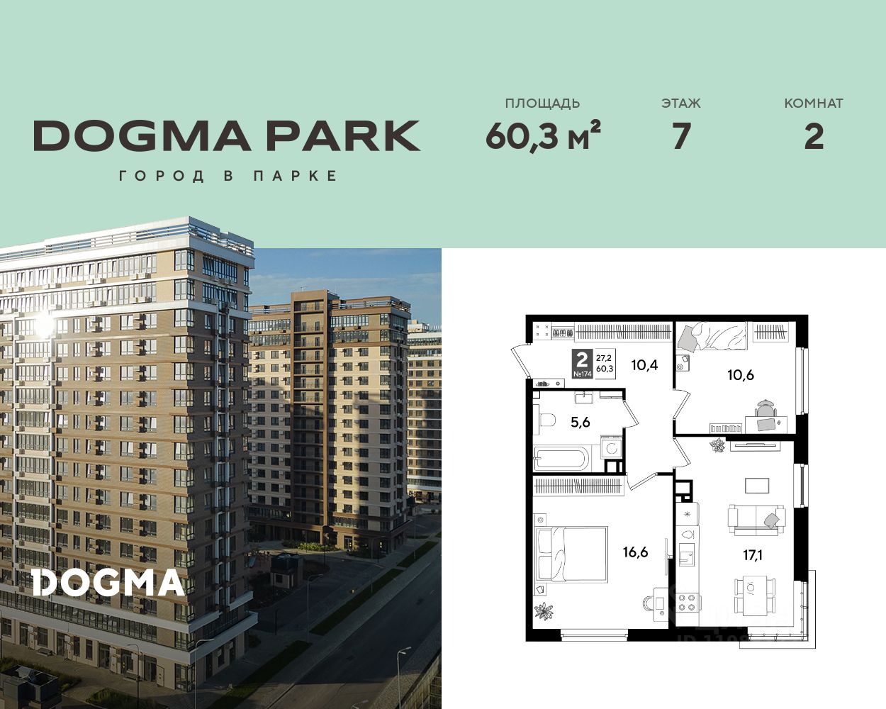 В продаже 2-комнатная квартира от застройщика! Мкр. "DOGMA PARK" г. Краснодар, Литер 36 Срок сдачи: 4 кв. 2027, общей площадью 60.3 кв.м., на 7 этаже.