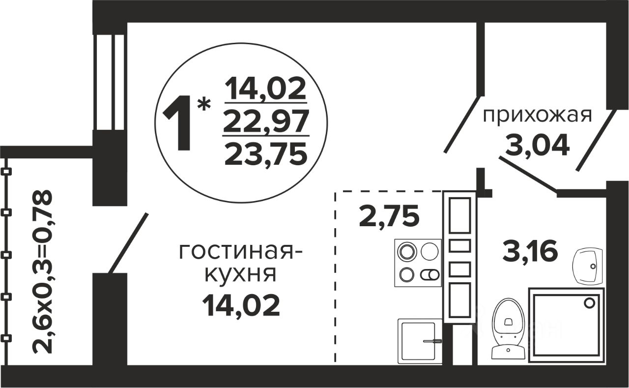 Общая площадь23,75 м²