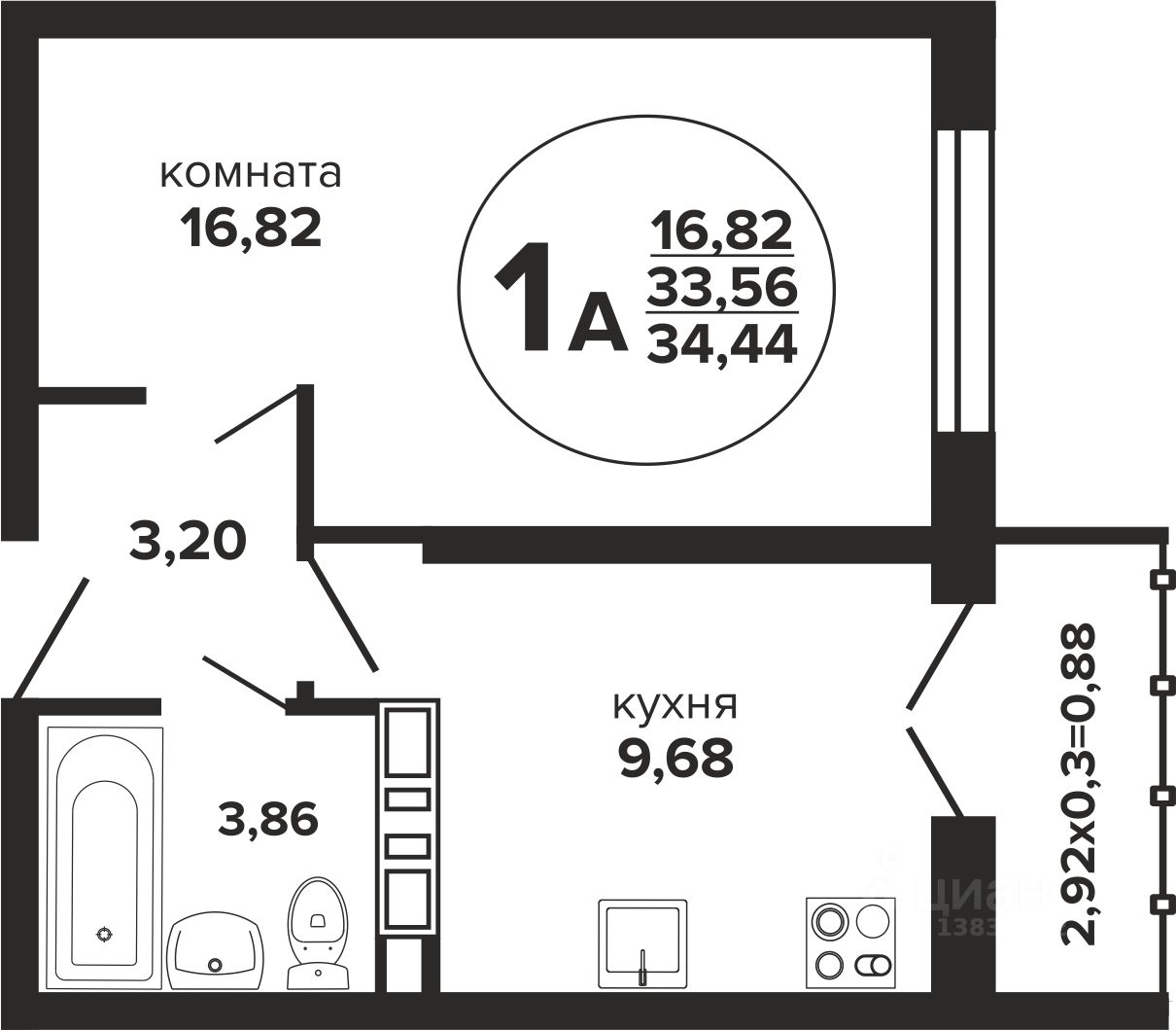 Общая площадь34,44 м²