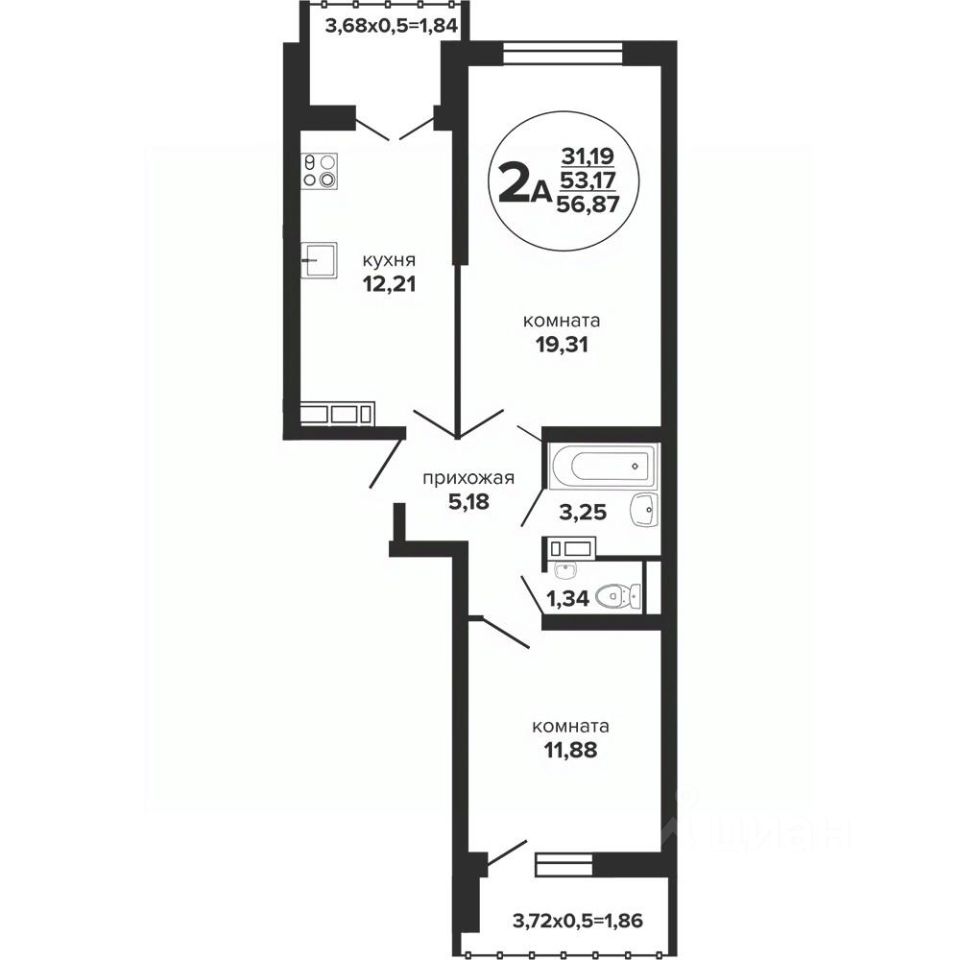 Общая площадь58,2 м²