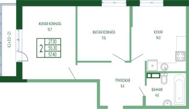 Общая площадь57,4 м²