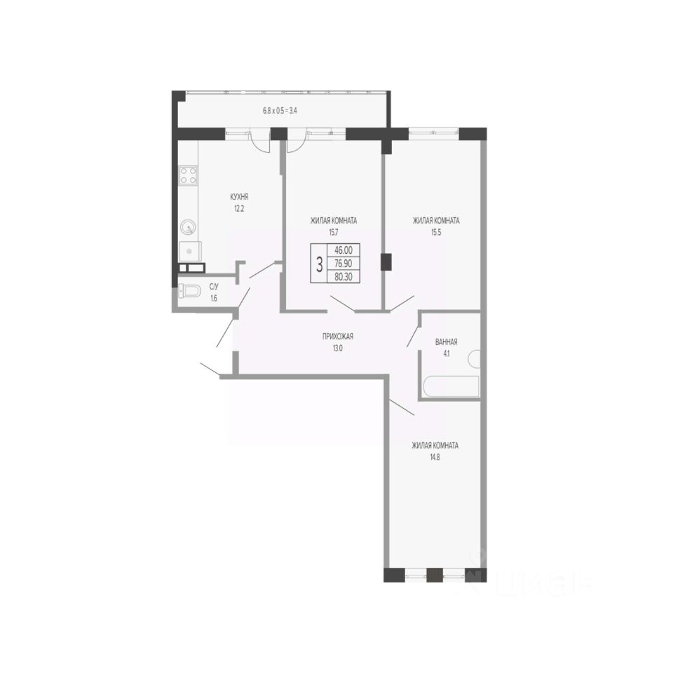 Общая площадь80,3 м²