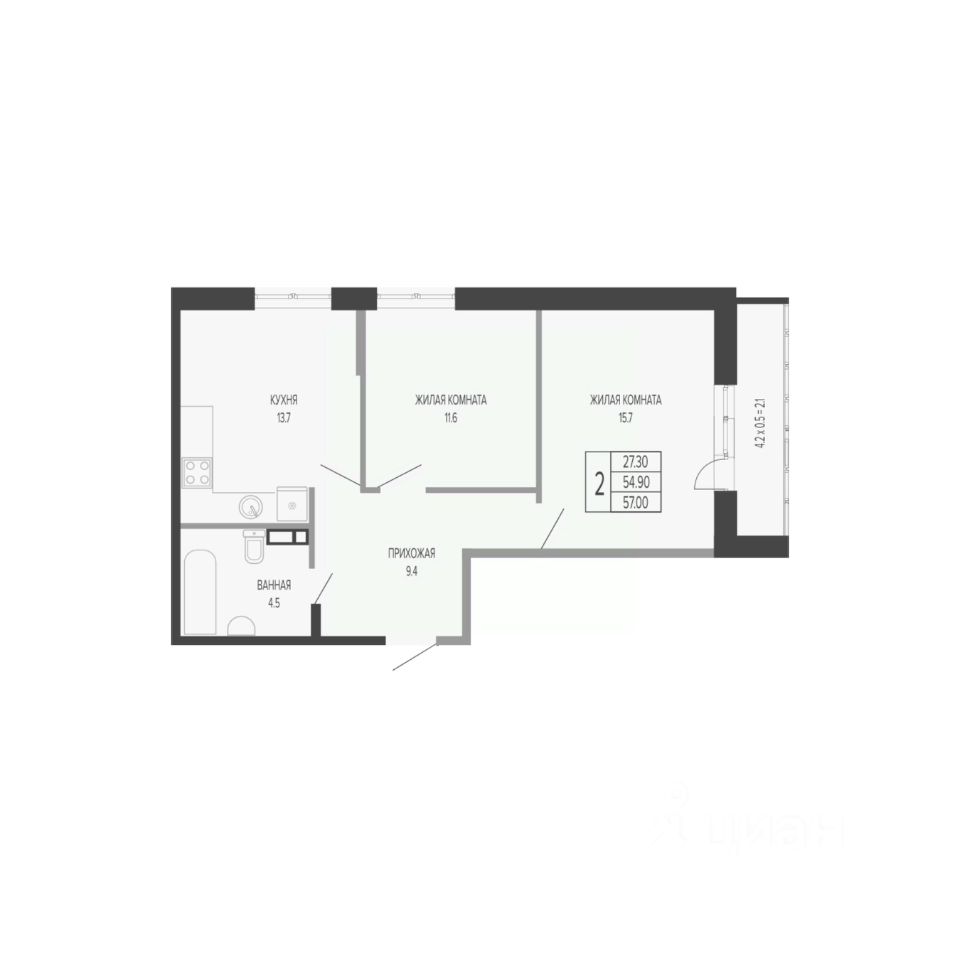 Жилая площадь27,3 м²