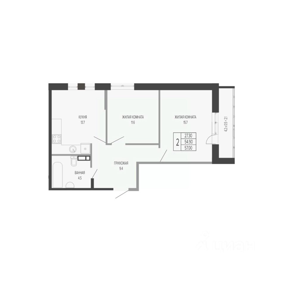 Общая площадь57 м²