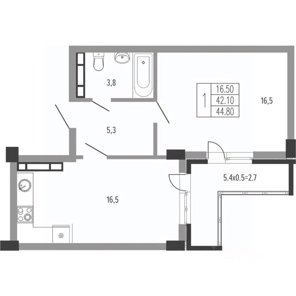 Жилая площадь16,5 м²