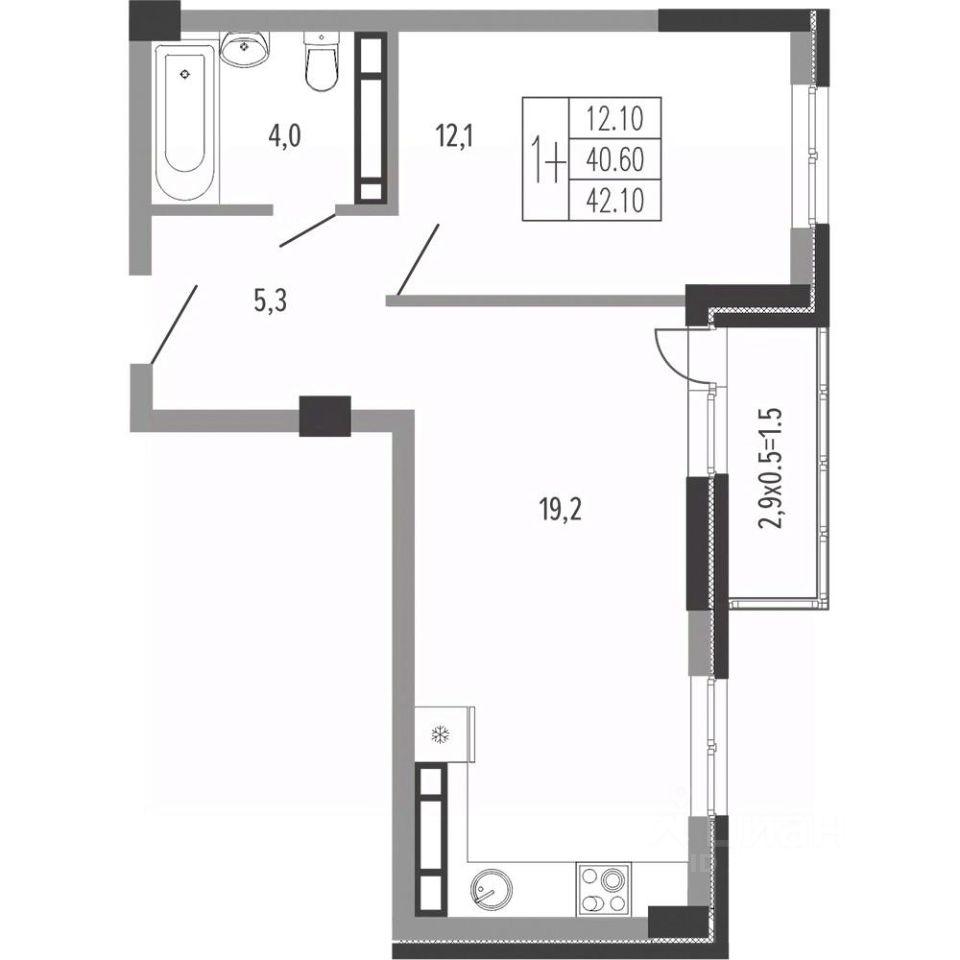 Жилая площадь12,1 м²