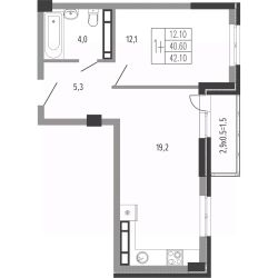 Общая площадь43,5 м²