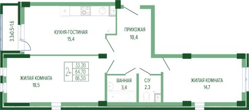 Жилая площадь33,2 м²