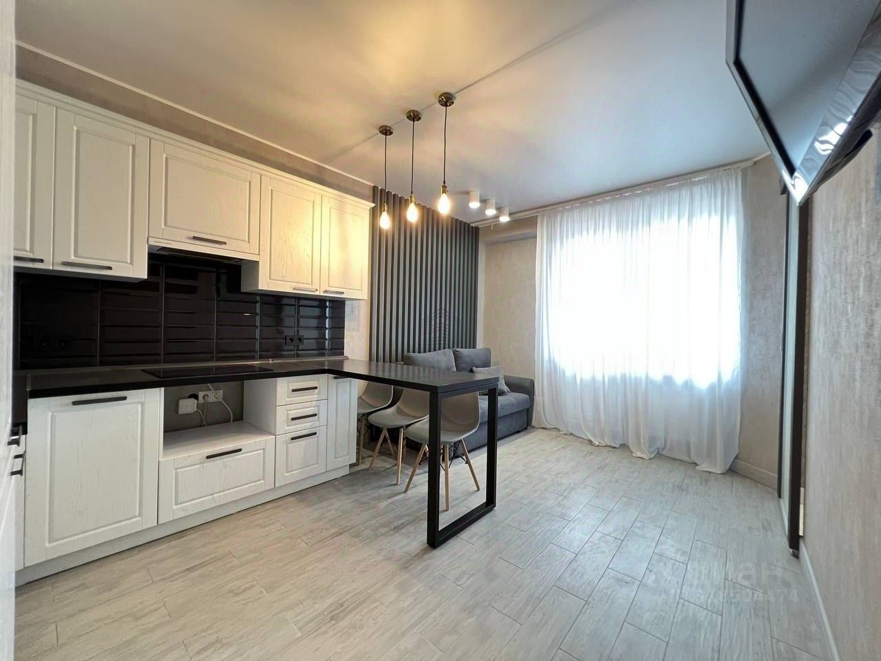 Квартира находится на 12 этаже . Из окон открываются потрясающие виды на историческую часть города. Планировка: общ. S=54,5 м, спальня и кухня-гостиная, с/у, просторная витражная лоджия .