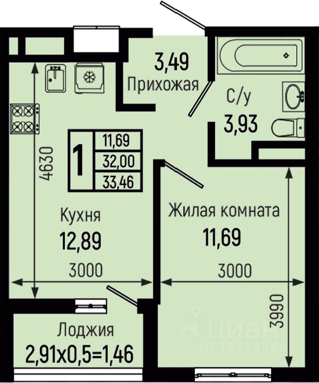 33,46 м²