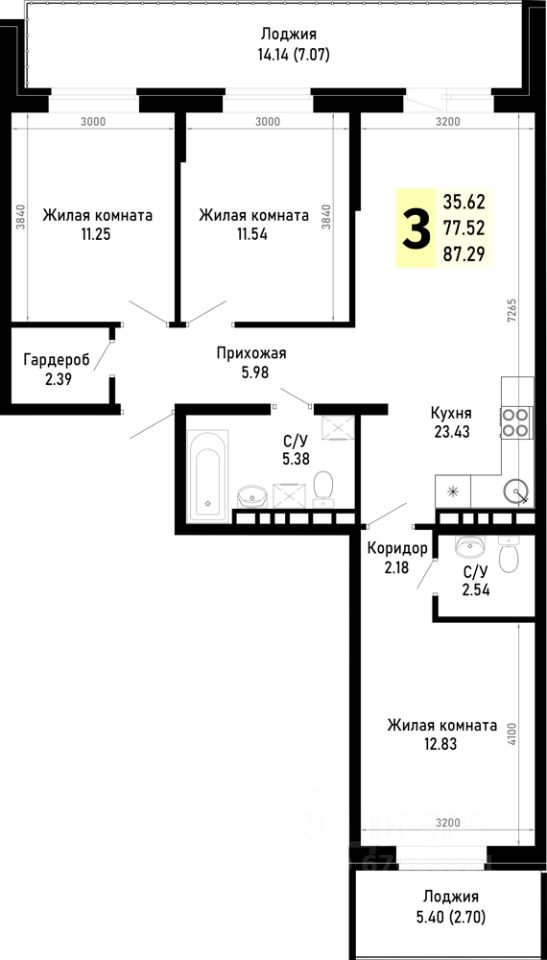 Продаётся 3-комнатная квартира в строящемся доме (Литер 4), срок сдачи: IV-кв. 2026, общей площадью 87.29 кв.м., на 2 этаже. Новый жилой комплекс по ул. Николая Лебедева от застройщика "ССК"