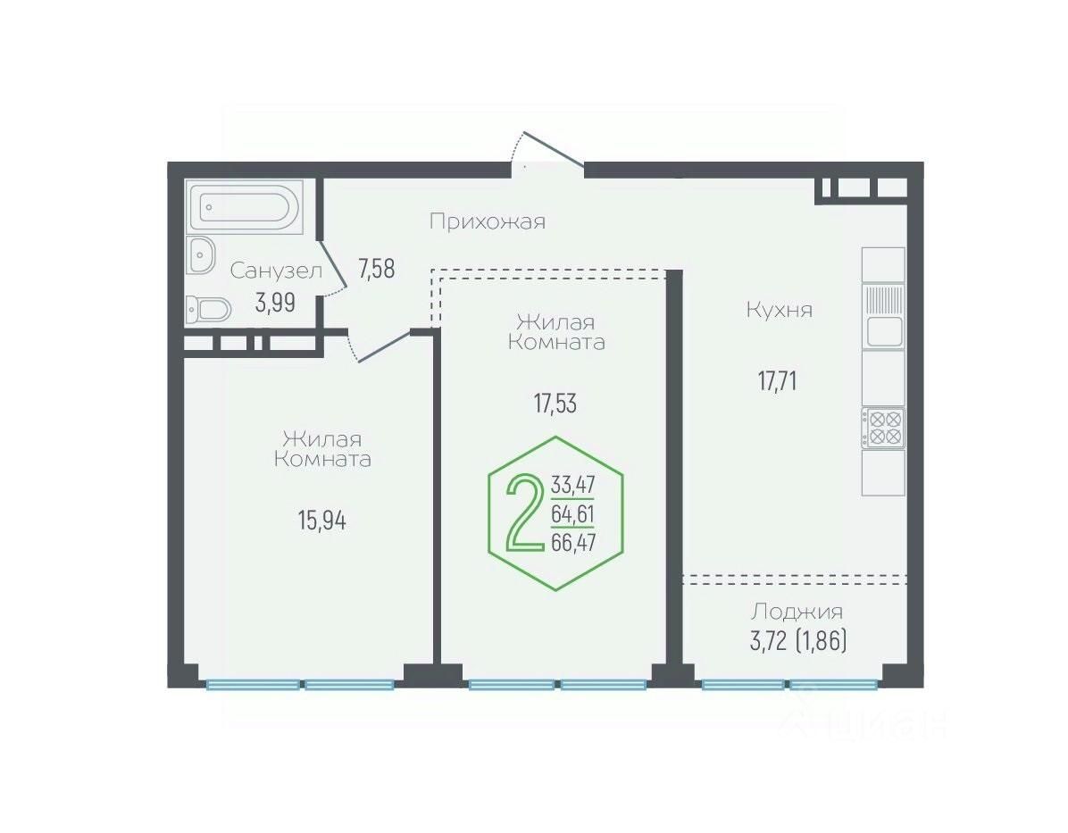 Общая площадь64,61 м²