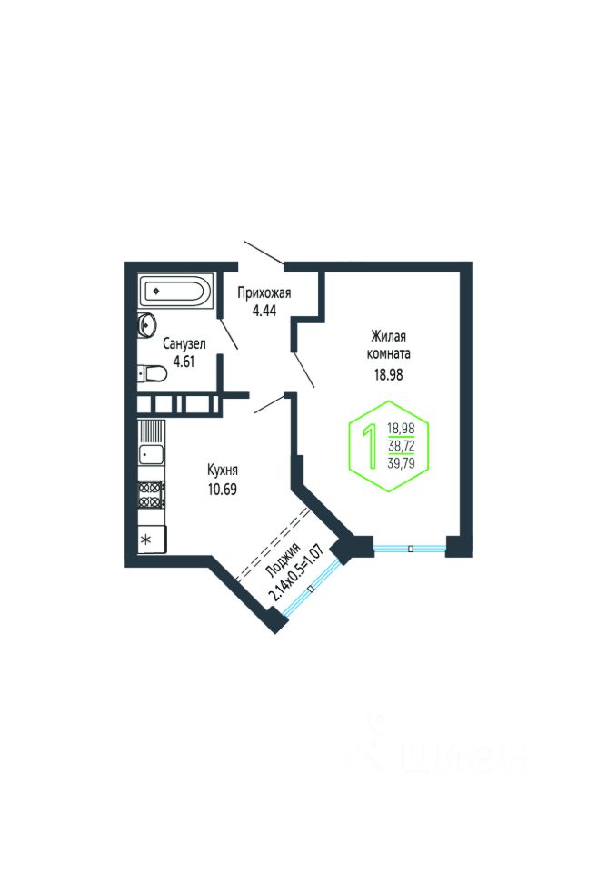 Общая площадь39,79 м²