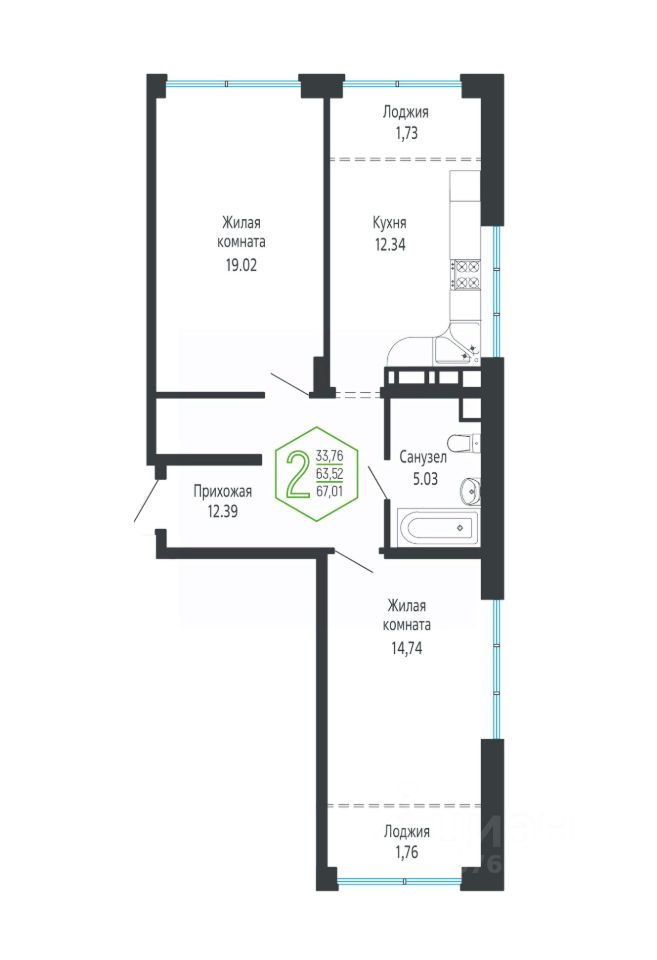 Общая площадь67,31 м²