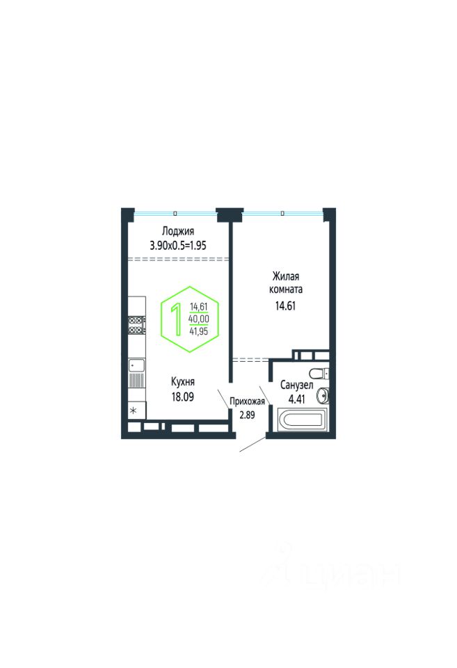 Общая площадь41,94 м²