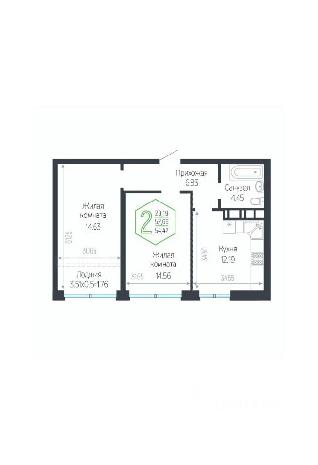 Общая площадь54,71 м²
