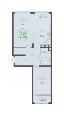 Квартира свободной планировки, 69,6 м²