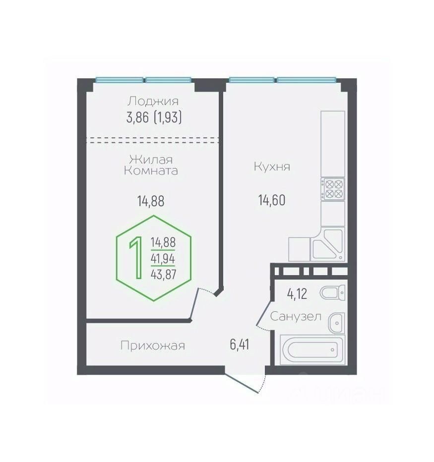 Общая площадь43 м²