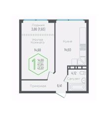 Жилая площадь14,9 м²